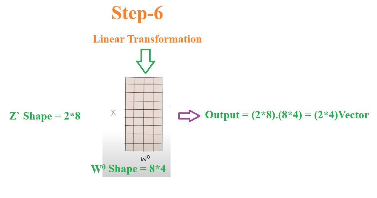 - Step-4 is to apply the self attention technique to the output of the step-3.