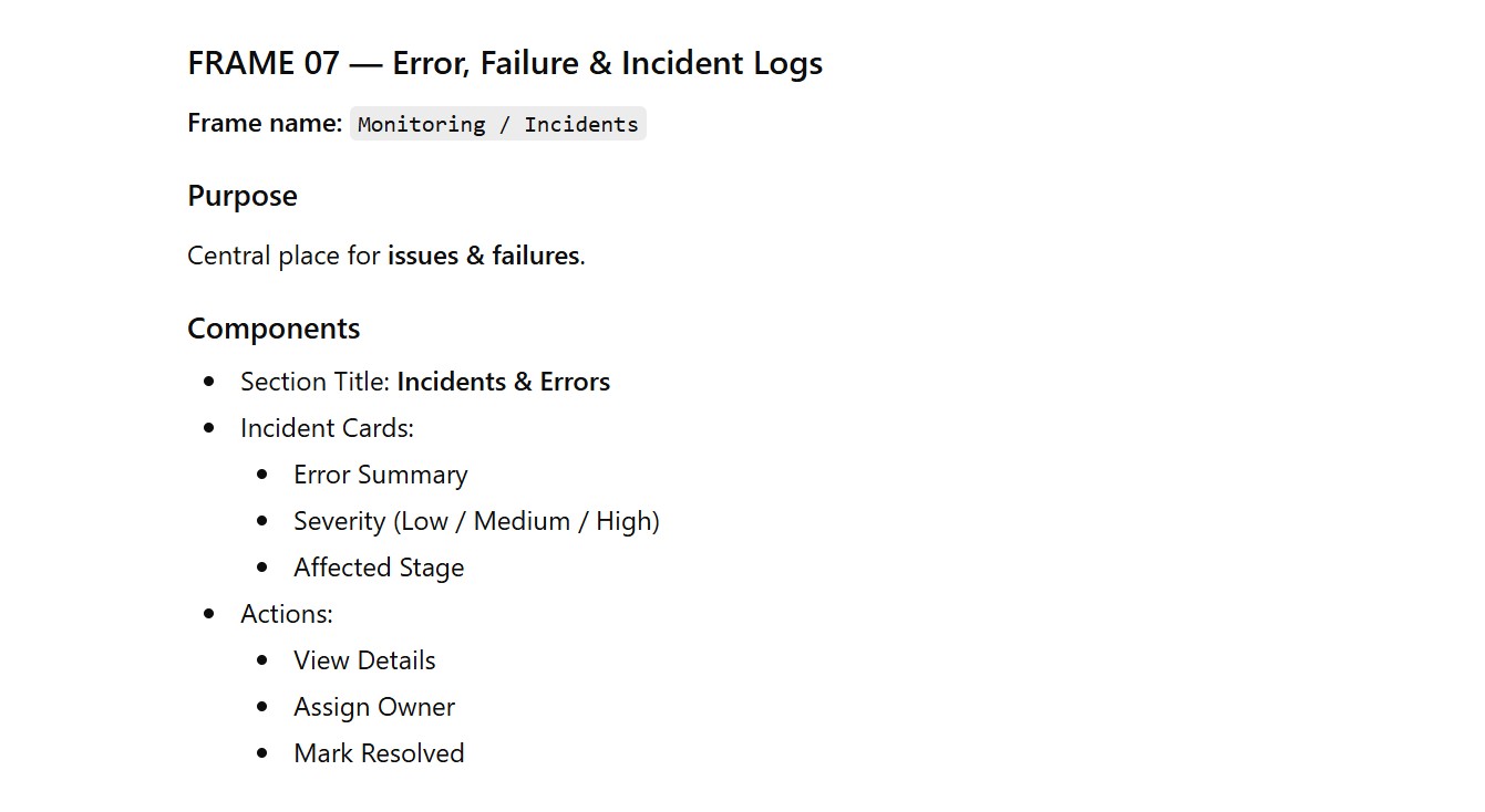 - Error, Failure & Incident Logs