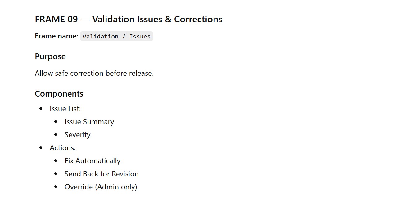 - Validation Issues & Corrections