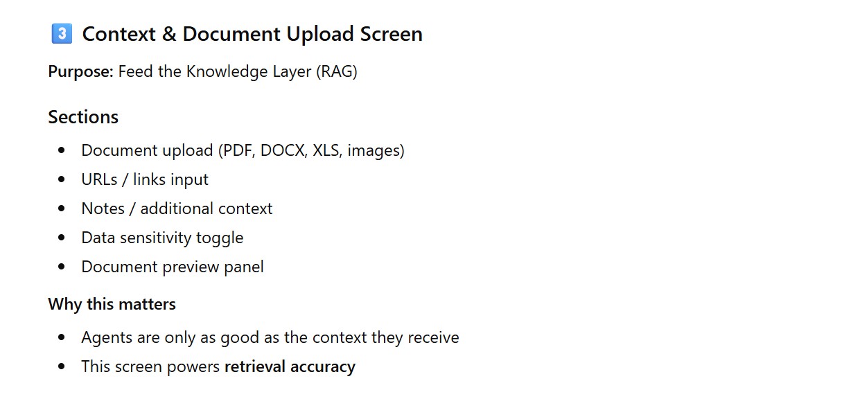 - Context & Document Upload Screen
