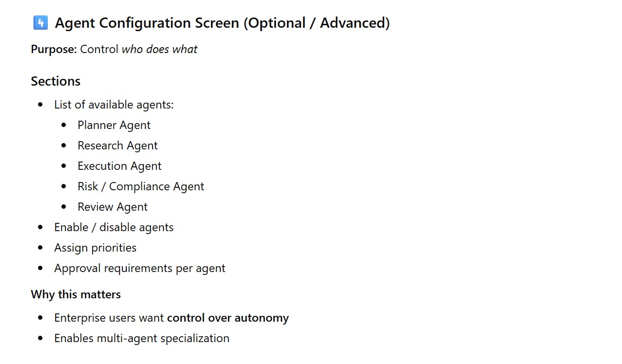 - Agent Configuration Screen (Optional / Advanced)