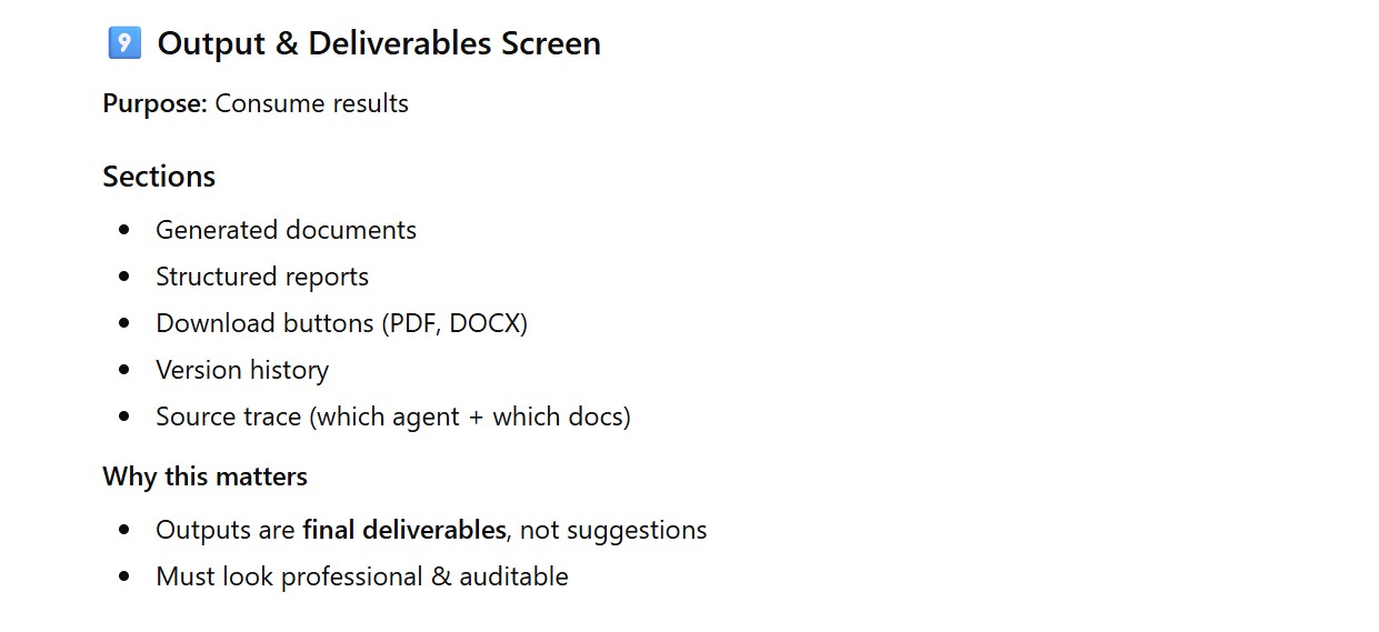 - Output & Deliverables Screen