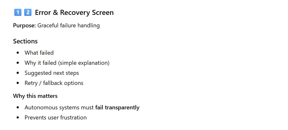 - Error & Recovery Screen