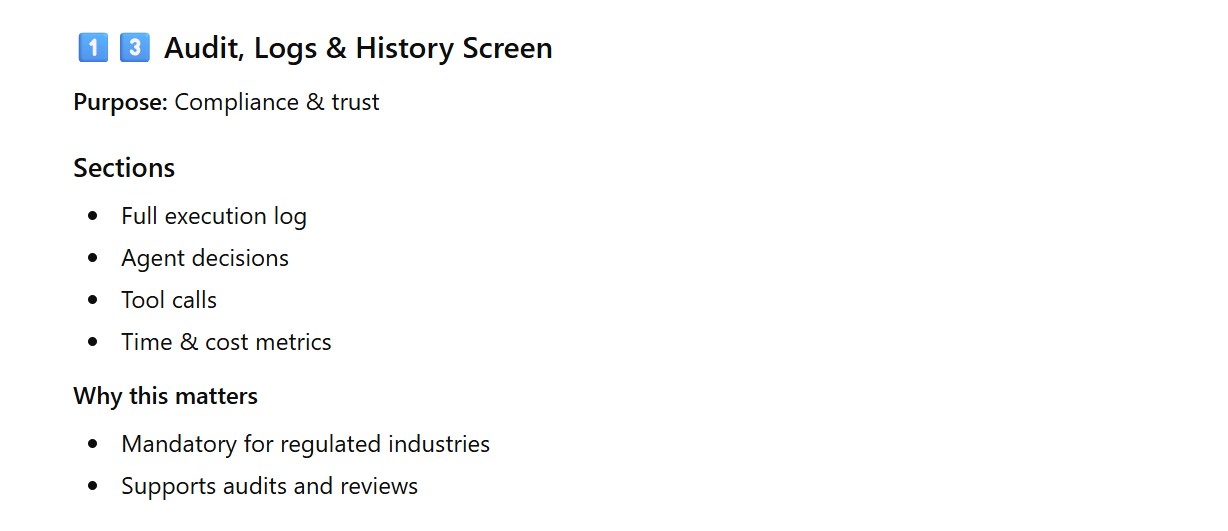 - Audit, Logs & History Screen