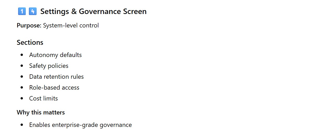 - Settings & Governance Screen