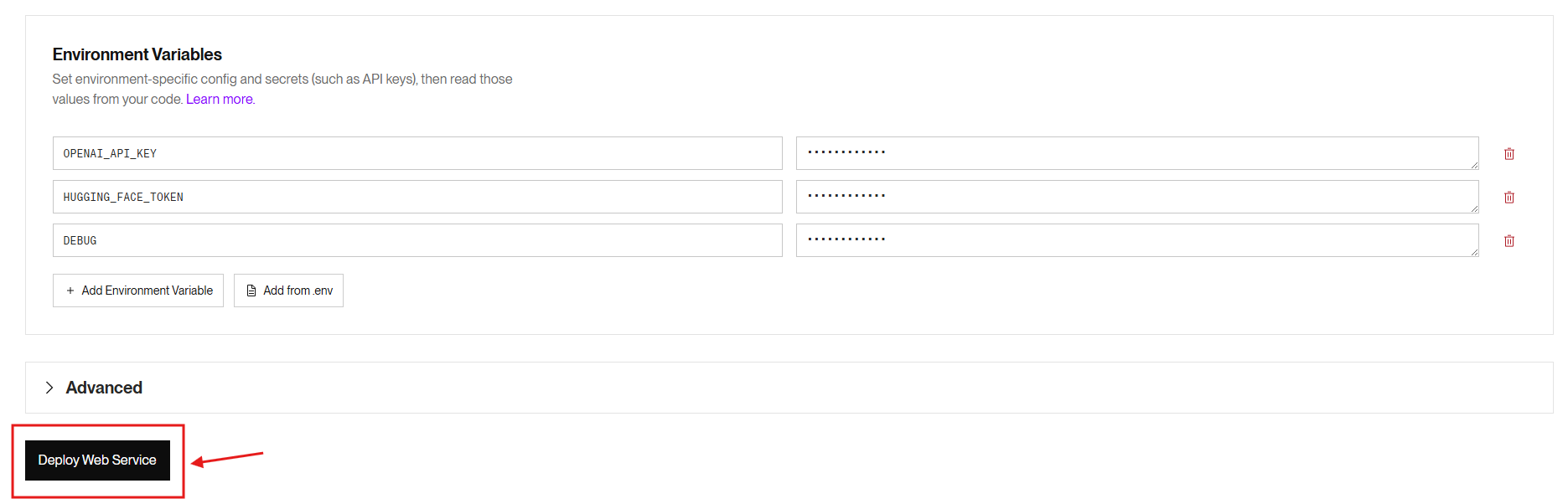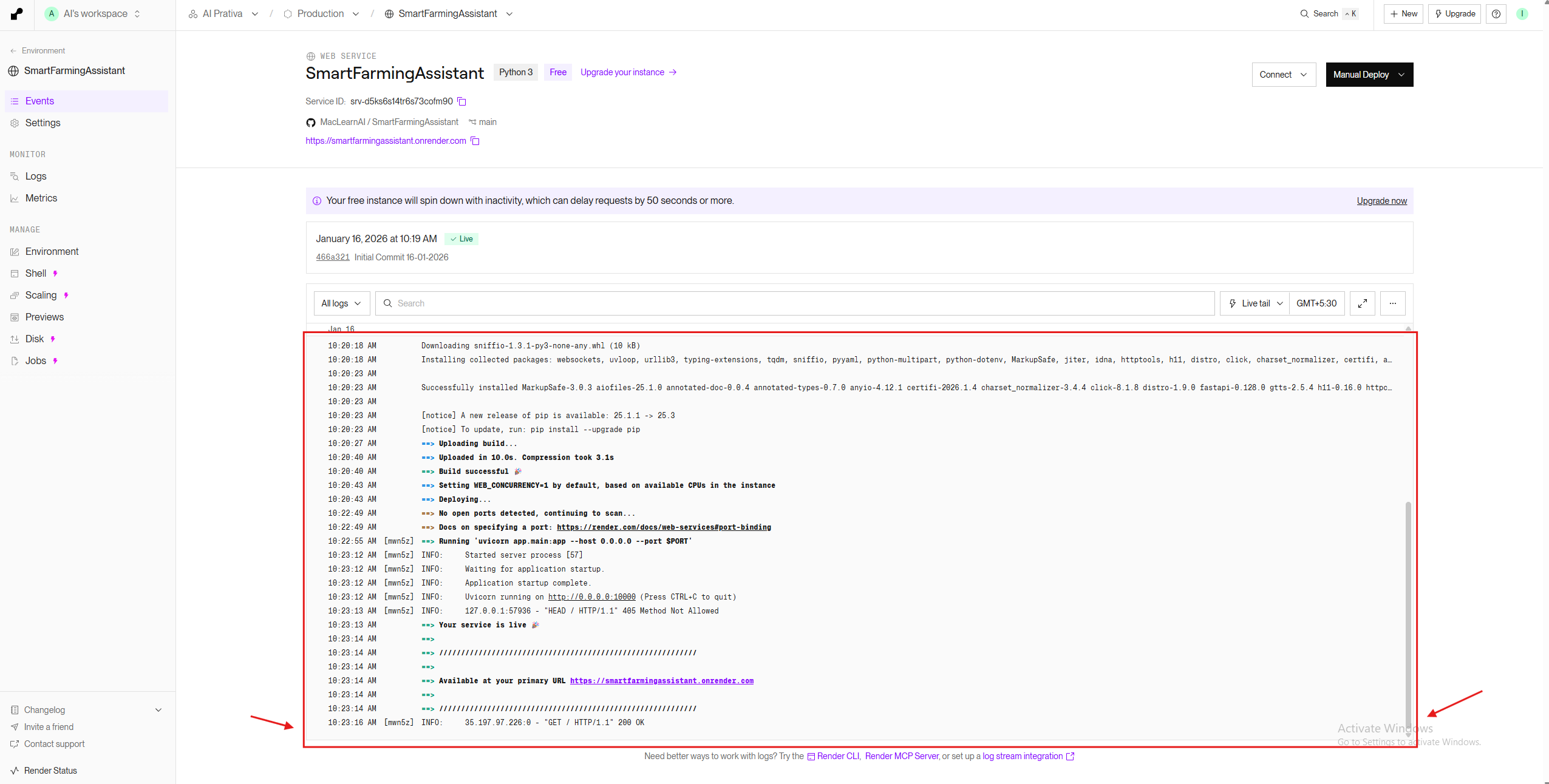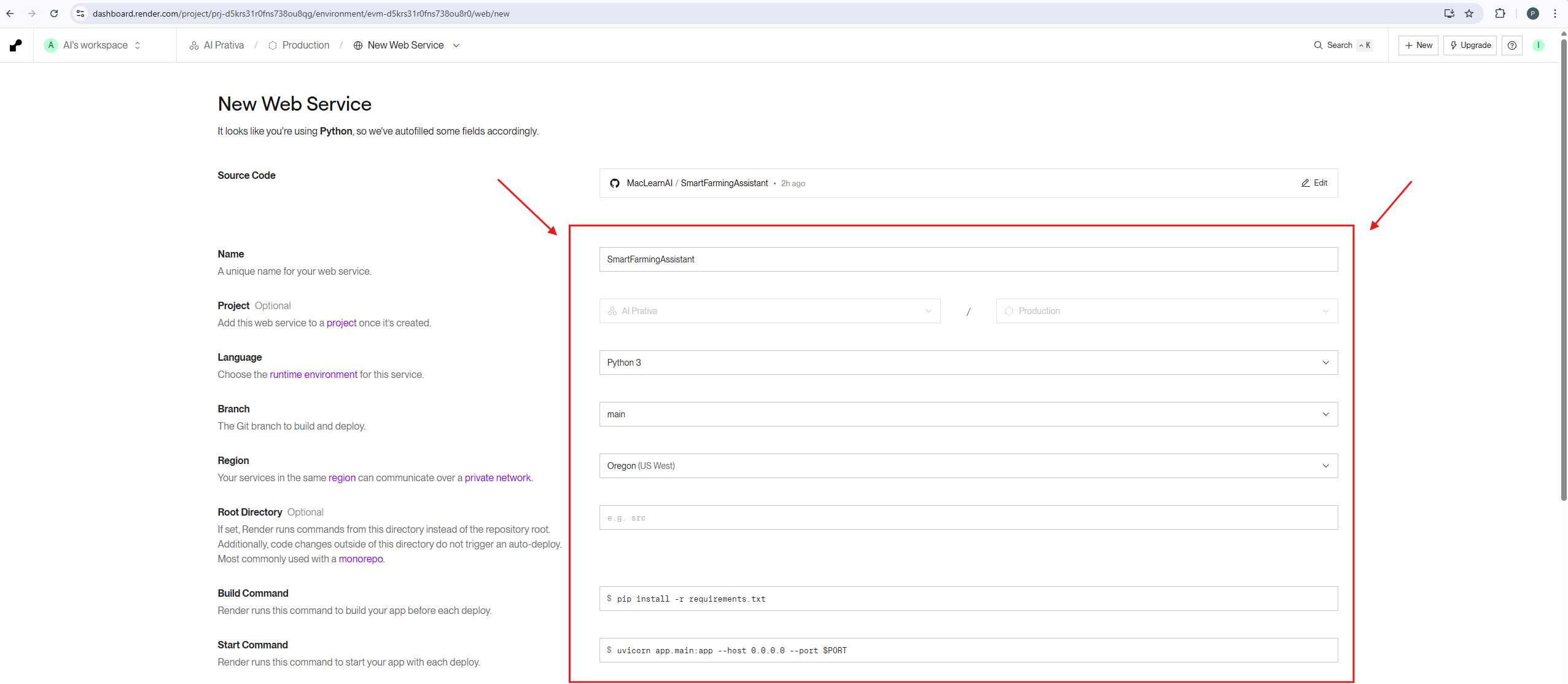Start Command: uvicorn app.main:app – host 0.0.0.0 – port $PORT