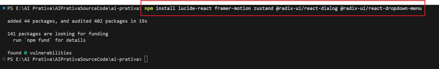 #1 Create new Next.js project with TypeScript and Tailwind CSS npx create-next-app@latest ai-prativa – typescript – tailwind – eslint – app – src-dir