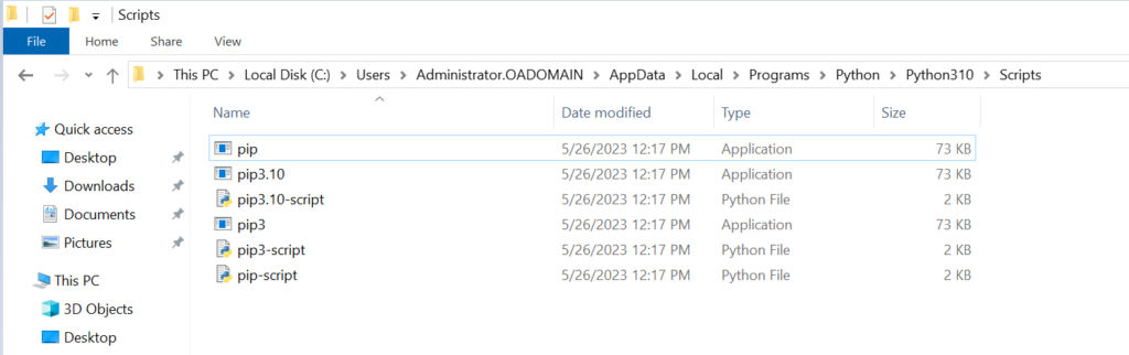 C:\Users\Administrator.OADOMAIN\AppData\Local\Programs\Python\Python310\Scripts