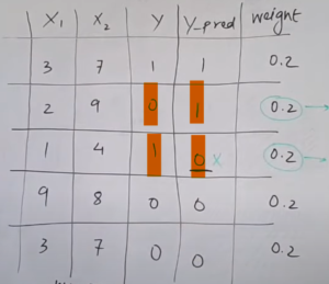 • The rows which are misclassified need to be given more importance in the next model.