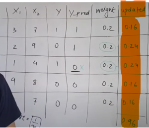 • You must be wondering why it is necessary to calculate the TE and performance of a stump. Well, the answer is very simple, we need to update the weights because if the same weights are applied to the next model, then the output received will be the same as what was received in the first model.
