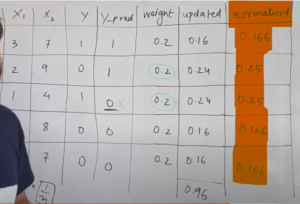 • To bring this sum equal to 1, we will normalize these weights by dividing all the weights by the total sum of updated weights, which is 0.8004.