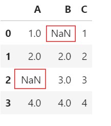 - Here, you can see that the ‘NaN’ value has not been replaced for column ‘B’.