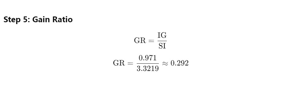 - In decision tree learning, the Gain Ratio is an improvement over Information Gain to evaluate splits.
