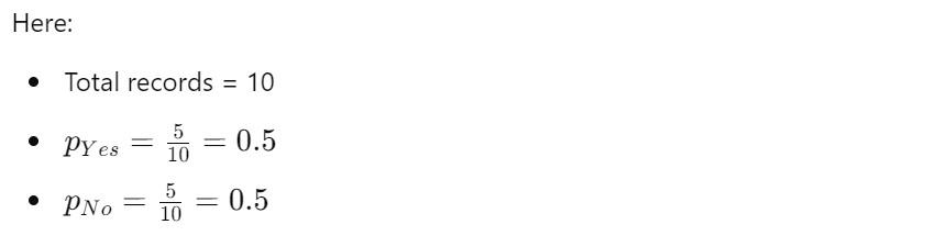 - It quantifies the probability of incorrectly classifying a randomly chosen element from the dataset if it were labeled randomly according to the class distribution.