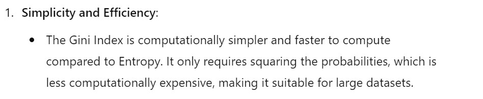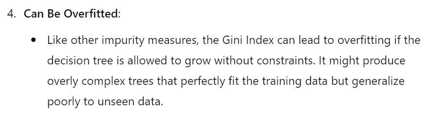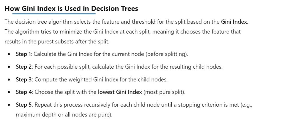 - The Gini Index is a critical component of decision trees, particularly in the CART (Classification and Regression Trees) algorithm.
