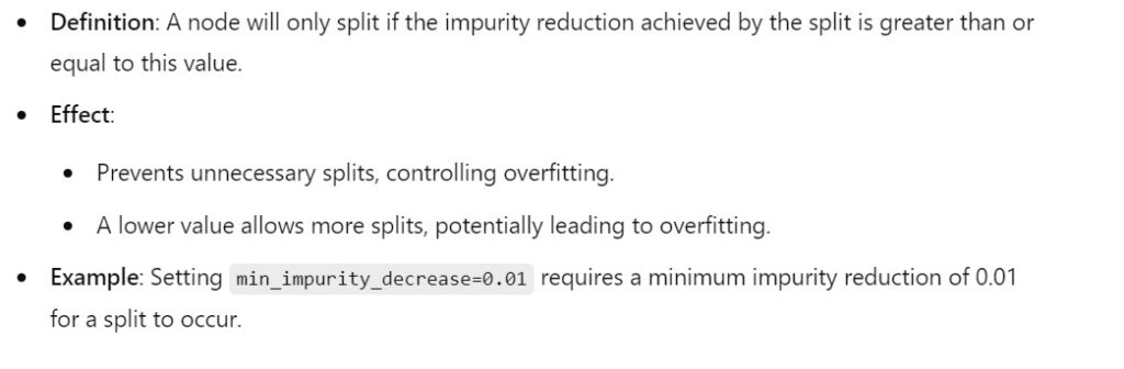 - Minimum Impurity Decrease (min_impurity_decrease)
