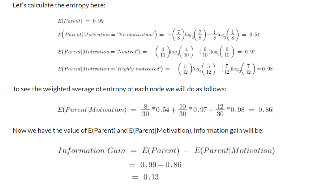Similarly, we will do this with the other feature “Motivation” and calculate its information gain.
