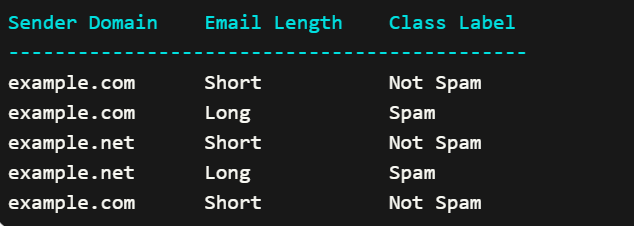 - Proportion of emails with Sender Domain “example.com”: 3/5 = 0.6