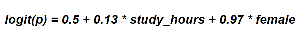 - Increasing the study hours by 1 unit (1 hour) will result in a 0.13 increase in logit(p) or log(p/1-p).