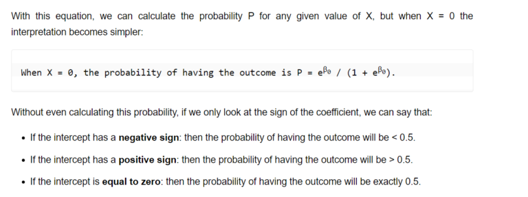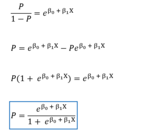 Because the concept of odds and log odds is difficult to understand, we can solve for P to find the relationship between the probability of having the outcome and the intercept β0.