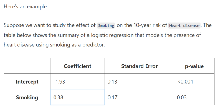 And because it is a positive number, we can say that smoking increases the risk of having a heart disease.