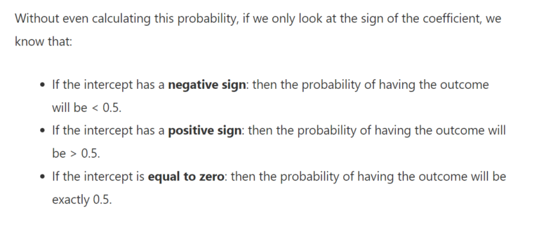 Sign Of The Coefficients: The sign (positive or negative) of the coefficient indicates the direction of the relationship between the predictor variable and the log-odds of the outcome variable. A positive coefficient suggests that an increase in the predictor variable is associated with an increase in the log odds (and thus the probability) of the outcome variable, while a negative coefficient suggests the opposite.