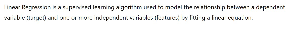 • The coefficients of the Linear Regression model represents the strength of relationship between the independent and the dependent variable.