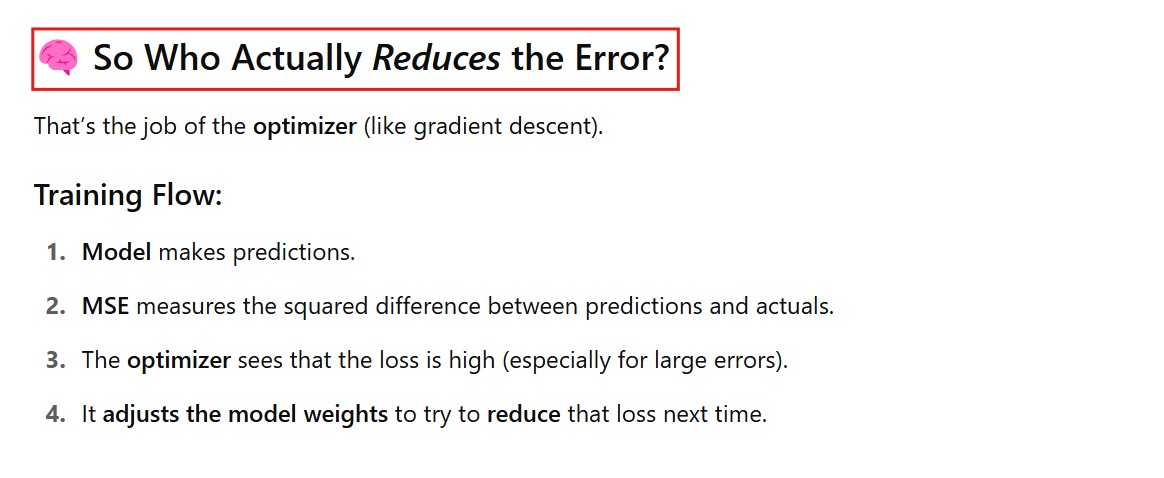 • Interims of reducing the larger MSE error the optimizer will reduce the error for the data point having maximum error .