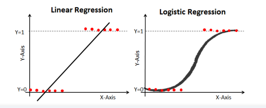 - To overcome these problems we use Logistic Regression, which converts this straight best-fit line in linear regression to an S-curve using the sigmoid function, which will always give values between 0 and 1.