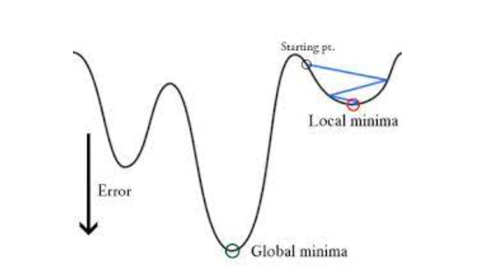 - The problem here is that this cost function will give results with local minima, which is a big problem because then we’ll miss out on our global minima and our error will increase.