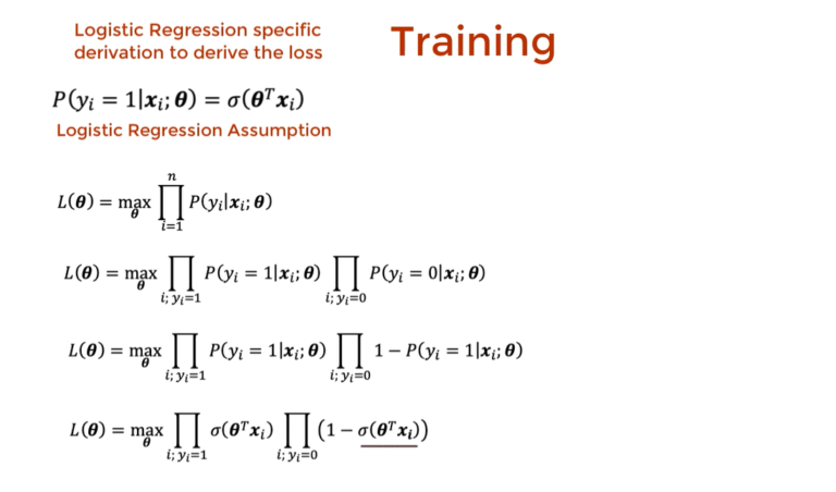 - We derive the Likelihood function from the probabilities of 0 and 1 classes.
