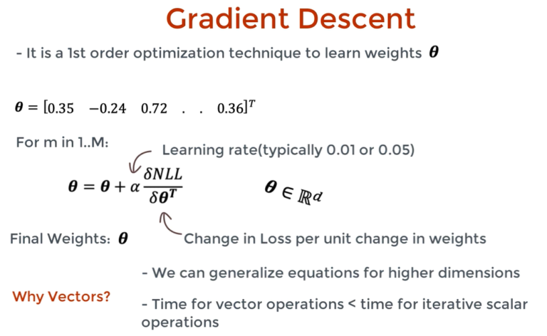 - Gradient Descent is an optimization technique that allows us to learn weights (beta) in an iterative manner.