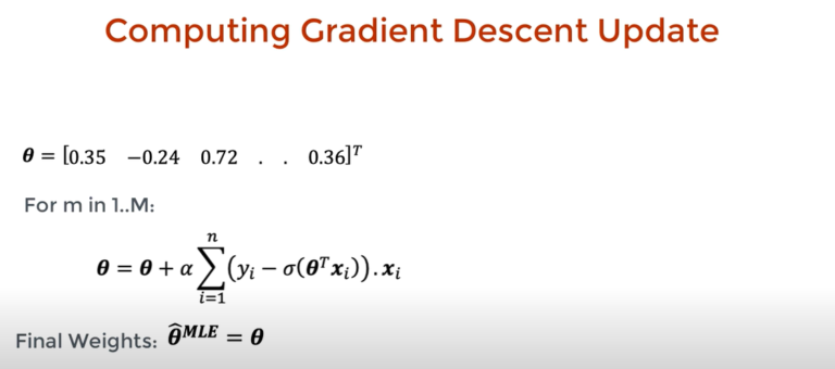 - After taking the derivative of the NLL function we finally got the algorithm for theta to update.