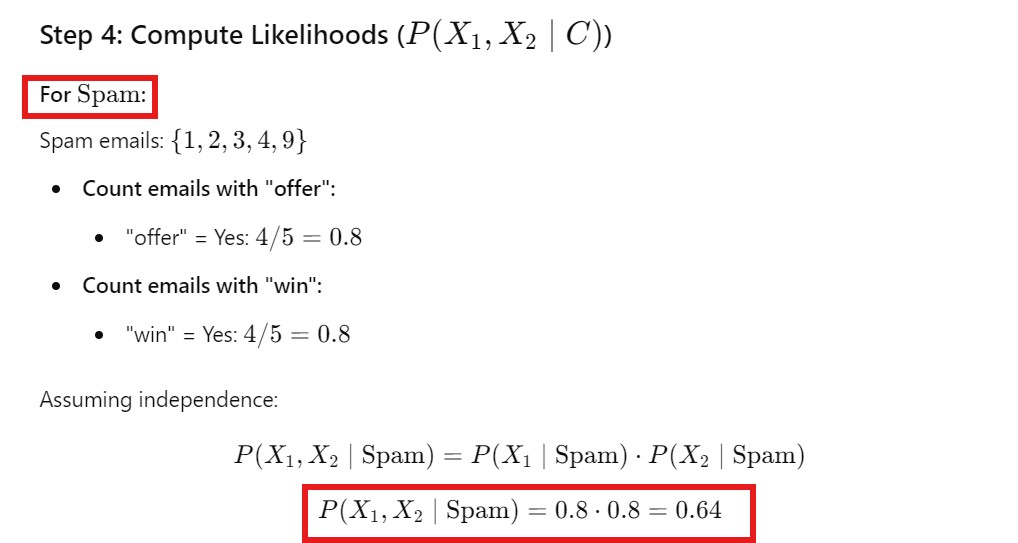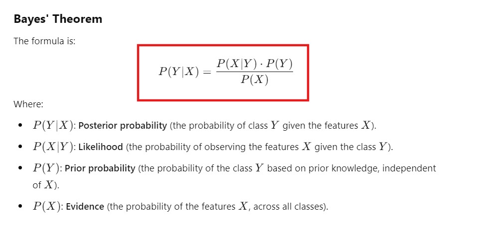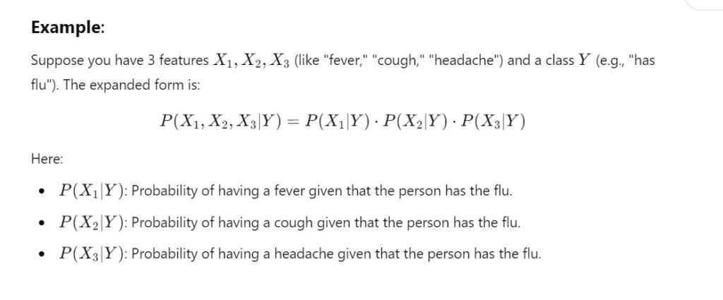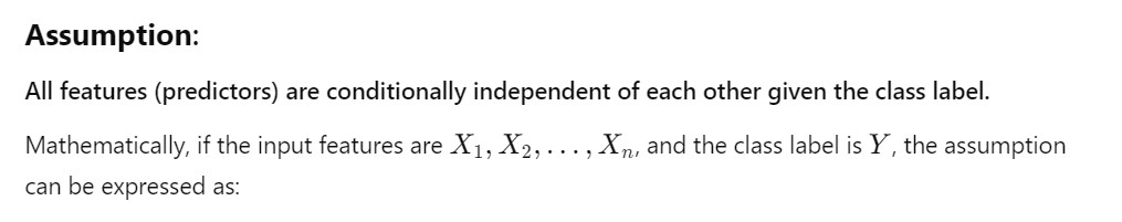 • The Naive Bayes algorithm assumes that all features are independent of each other if you already know the class.