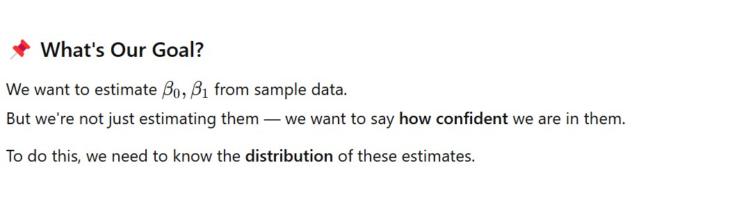 - As our beta is the sum of the error terms, if we calculate multiple beta value and plot it we will see it will also follow the normal distribution.
