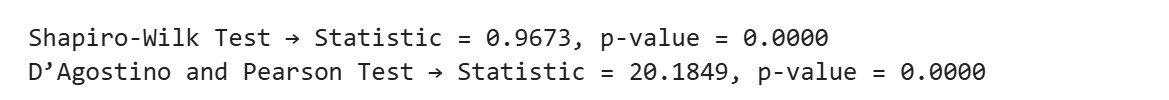 print(f"D’Agostino and Pearson Test → Statistic = {stat2:.4f}, p-value = {p2:.4f}")
