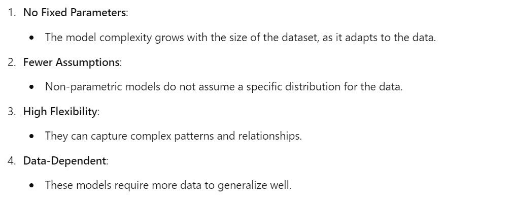 - A non-parametric model makes no strong assumptions about the form of the mapping function.