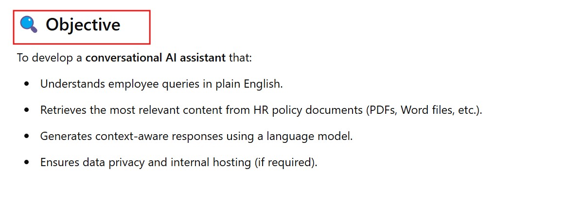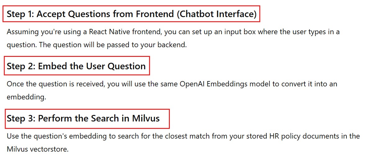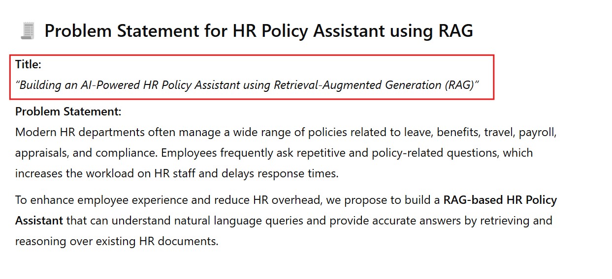 final_prompt = f"HR Policy Information:\n{retrieved_chunks}\n\nUser Question: {user_question}\n\nProvide a detailed answer based on the HR policy information."