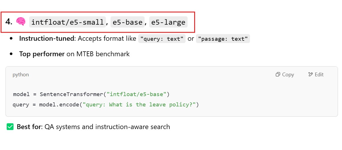 - intfloat/e5-small, e5-base, e5-large