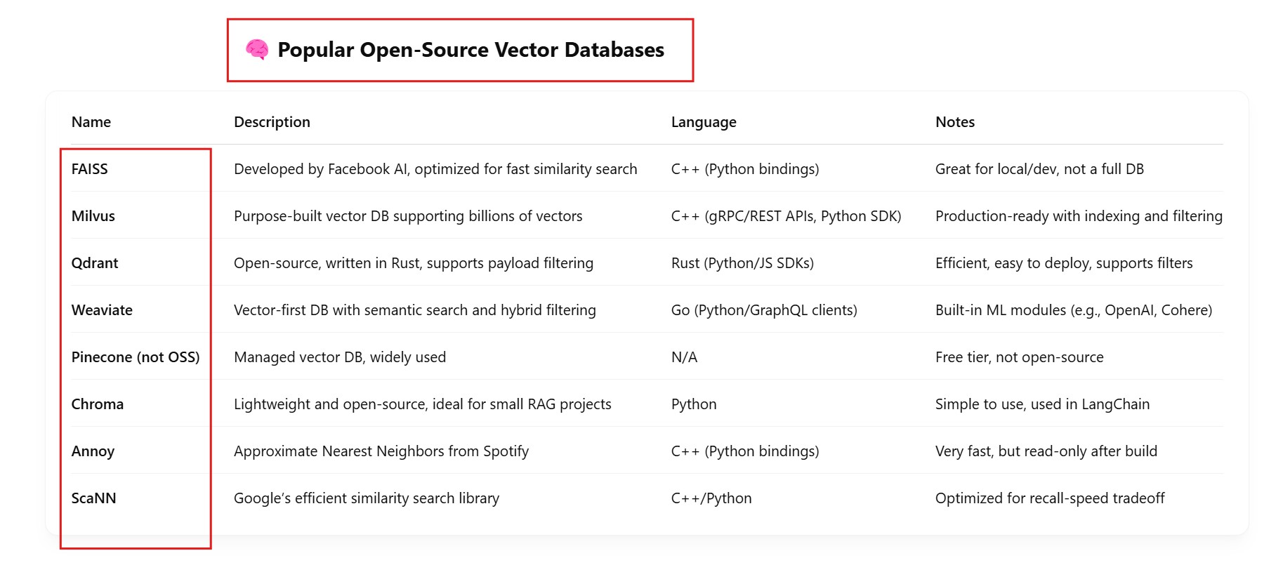 Available Vector DB