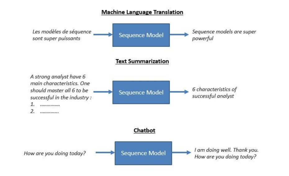 - They are handy for tasks where the input and output are sequences of varying lengths, which traditional neural networks struggle to handle, such as solving complex language problems like machine translation, question answering, creating chatbots, text summarization, etc.