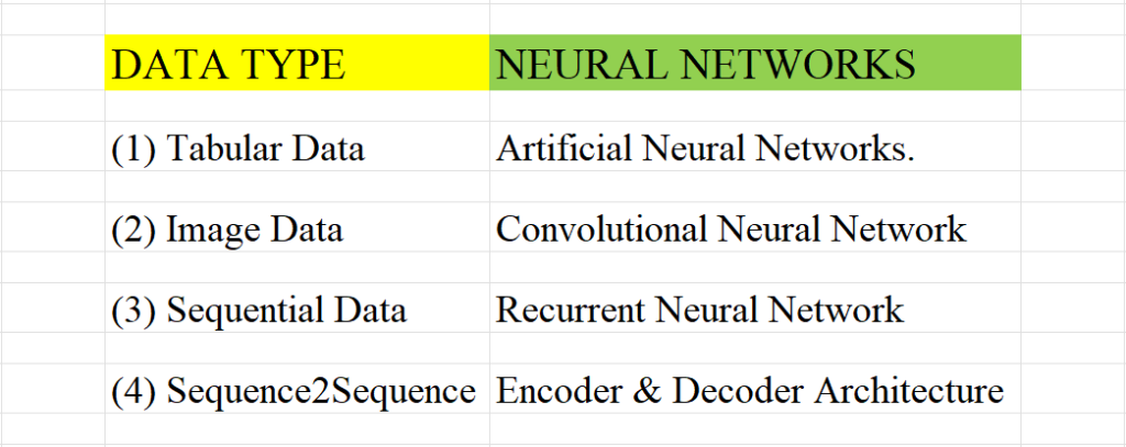 - Milestone-1: In the initial days we have only tabular information that will consist of rows and columns, like Excel, and CSV data sets. Example student dataset, employee dataset, product details etc. This data is called the Cross-Sectional dataset. To process these data we are using “Artificial Neural Networks.”