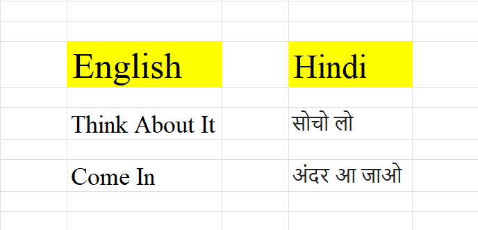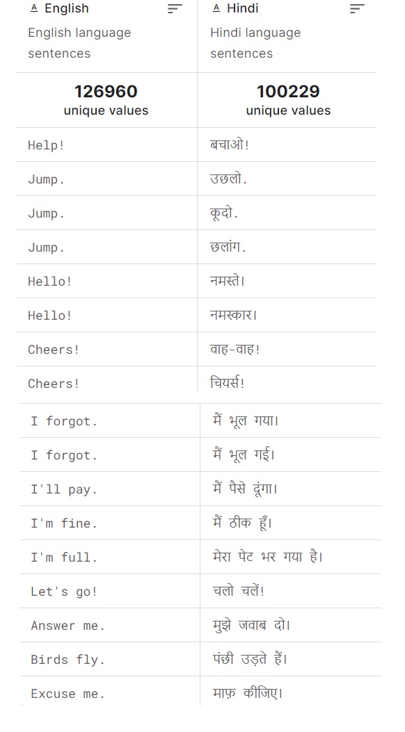 - As we are going to take Machine Translation as an example, the first column will be English word and the second column will be the ‘Hindi’ word.