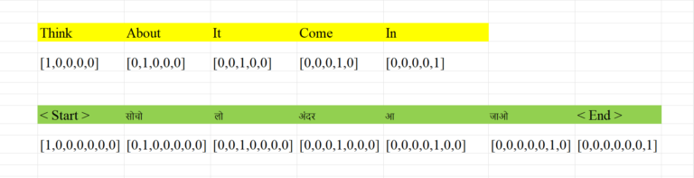 - In Hindi also we have 5 words additionally we have <START> & <END> words which also we need to do ‘One Hot Encoding’.