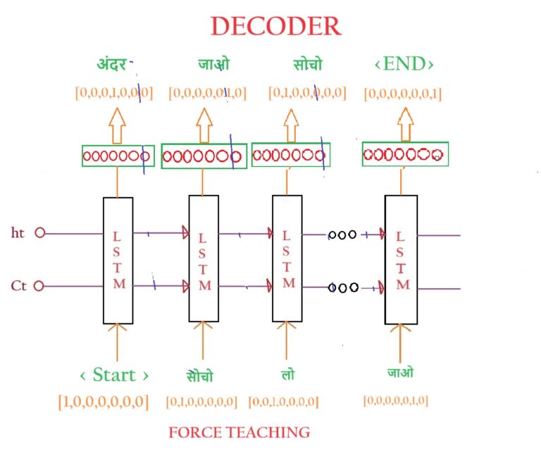 - We can pass ‘अंदर’ to the second time step but the training will be slower if we pass incorrect input to the LSTM, hence we train the model with the correct input value.