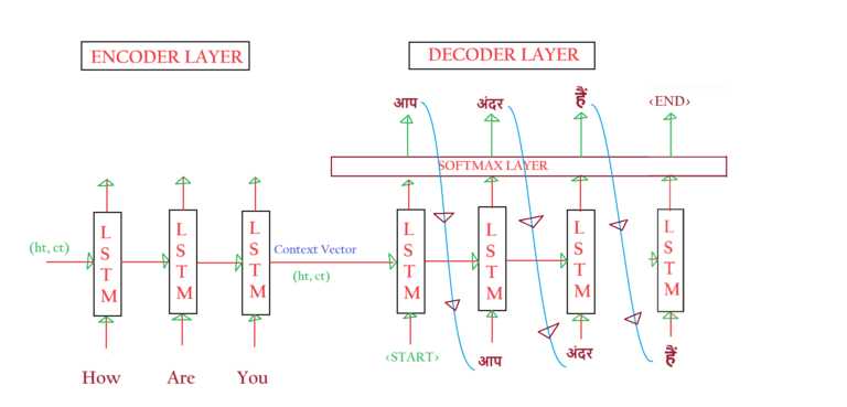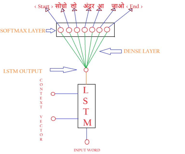 - After you pass the ‘Context Vector’ and the ‘START’ word to the LSTM network will produce ‘आपसे’ as an output.