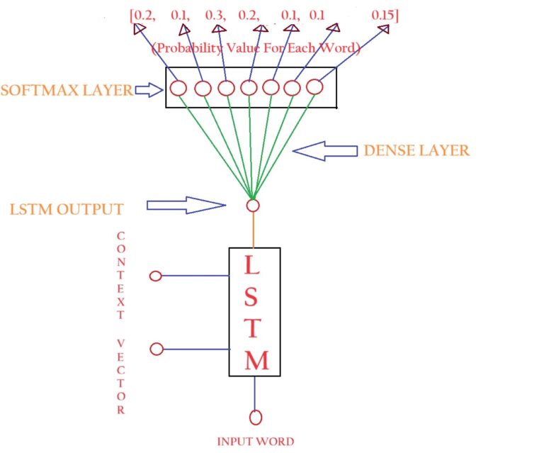 - The output from the SoftMax layer will represent the Probability value for each word.