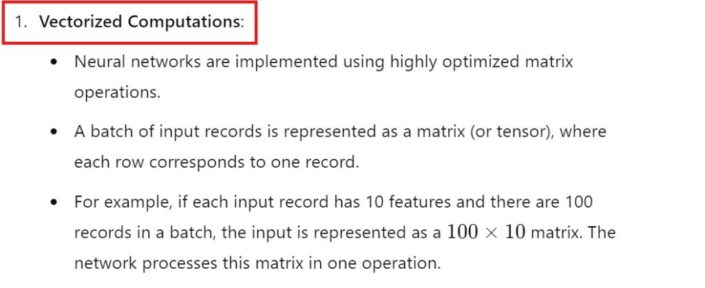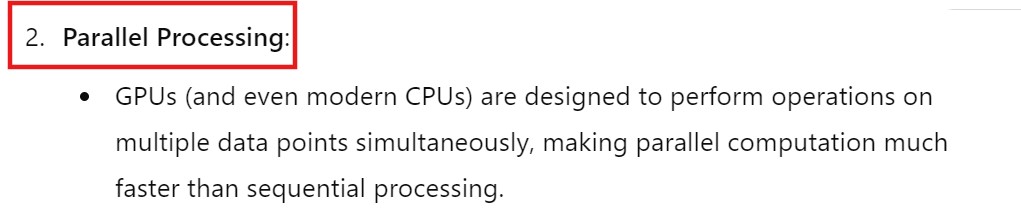 This is made possible through vectorized operations and the efficient handling of data by modern hardware like GPUs.