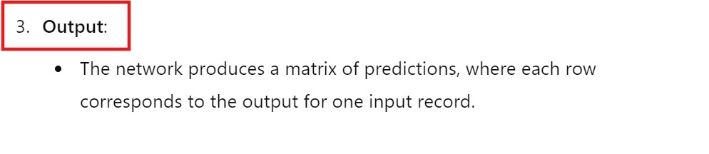 - Output : [100*1] means for input of 100 records we also got output of 100 records with one column value.