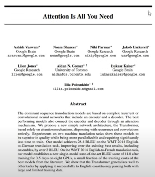 - In 2017 Google Brain released one paper called ‘Attention Is All You Need’.